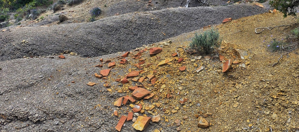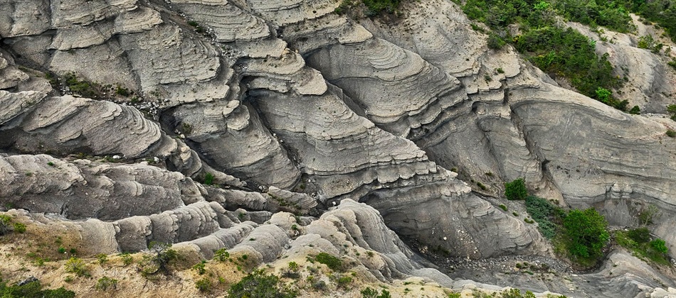 Aber auch ganze Gebirge in der Gegend dort bestehen aus Tonablagerungen und haben dementsprechend viele offene Hangrutschungen im trockenheitsresistenten Bewuchs. Diese Berge werden vor den Felsenbergen verschwinden!