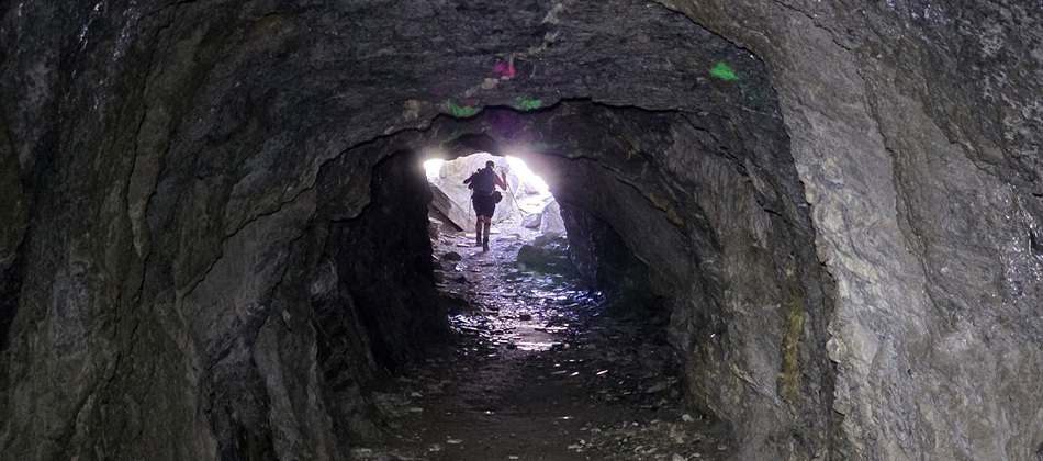 Oben angekommen heißt zunächst: Am sogenannten Kuhtunnel angekommen. Dieser mannshohe Tunnel führt etwa 150 Meter durch den Berg (Lampe notwendig). Nach der angenehm kühlen Querung durch den größten Felsturm im Gipfelbereichs des Roc du Vent erreicht man einen Klettersteig. Recht einfach führt er durch ein Felstal und entlang eines Simses hinauf zu dem Gipfelbereich, der auch für „normale Wanderer“ erreichbar ist. Doch ganz ohne Klettersteigausrüstung: heute lieber nicht!