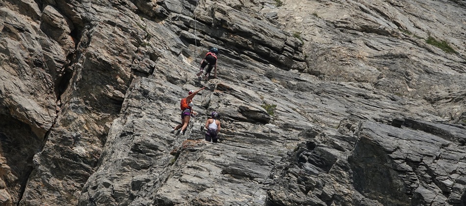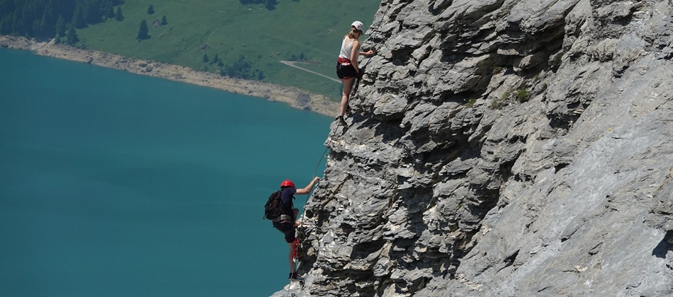 Ein recht großer Parkplatz oberhalb des Stausees „Lac de Roselend“ deutet an: Hier kann man wo hin! Und tatsächlich sind gleich mehrere Klettersteig-Abschnitte hier vorhanden. Gut gesichert und stellenweise exponiert (C+).