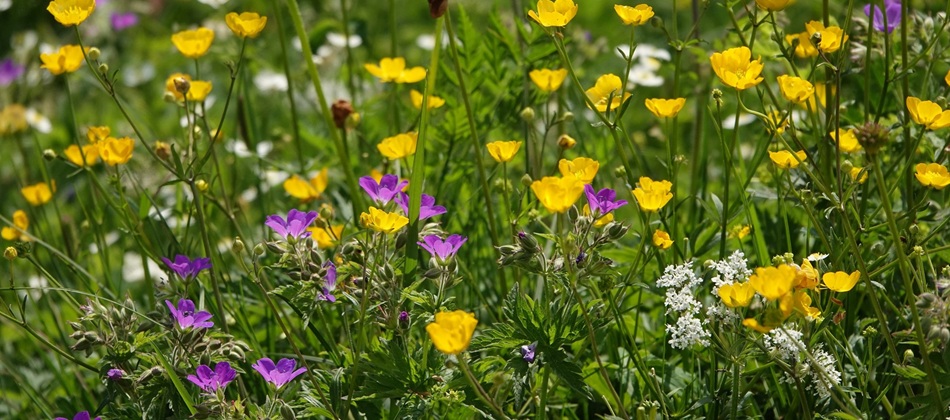Der direkte Aufstieg für den Wanderer, der hinauf möchte, ist ein schmaler und weiter oben verdammt steiler Wiesenpfad. Herrlich die Blütenfülle und die sich weitende Sicht, aber eben steil. Oben angekommen konnte man während des Aufstiegs schon einigen Klettersteig-Gehern bei ihrem Weg hinauf durch die Felswand zuschauen.