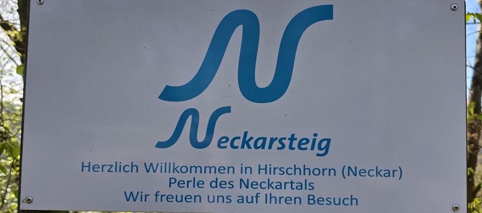 Wer bis zum nördlichen Ortseingang von Hirschhorn fährt, findet die schmale Zufahrtsstrasse hinauf zum Schloß von Hirschhorn. Unmittelbar an den hoch aufragenden Burgwänden ist ein kostenloser Parkplatz. Und hier startet auch der Rundwanderweg. Am Wanderwege-Schild vorbei geht es sogleich steil bergauf. Der felsdurchsetzte Bergkamm leitet zunächst zu einem alten Rastplatz mit Steintisch, von dem aus man einen recht guten Blick auf einen der Türme der Burganlage (1260 als klassische Höhenburg über dem Neckar errichtet) und hinab zum Neckar hat.