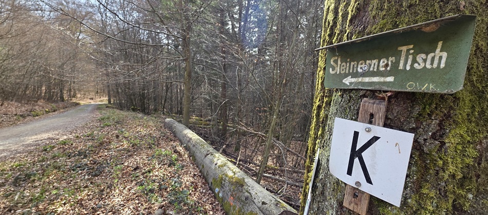 Nur 400 Meter weiter kommt man zum Kulturdenkmal Steinerner Tisch, zwei Sitzgruppen etwas abseits der Forststrasse mit Steintischen und Steinsitzplatz. Allenthalben warnen Schilder vor den „Waldtypischen Gefahren“, weswegen auch der zugehörige Rastplatz zu den Steinernen Tischen einige Meter abseits an einer Gabelung der Forststrasse angelegt ist.