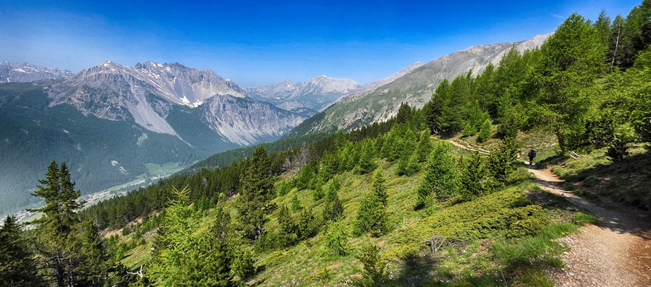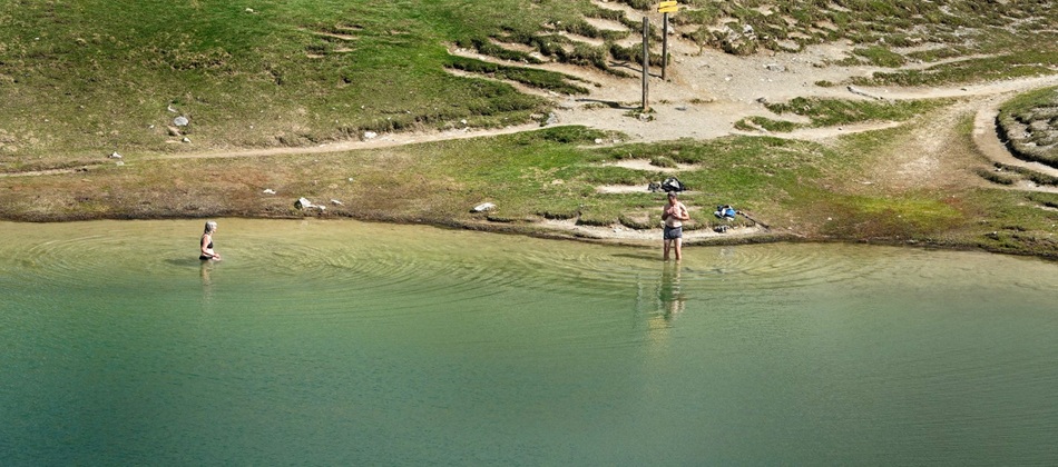 Der Anfang führt angenehm durch Zirbenwald und Lärchen. Erst an einer Bergnase ändert sich der Charakter der Wanderung. Kurz nach der Abzweigung zum Col du Tronchet wird es steiniger. Der weitere Aufstieg ist nun waldfrei und man sieht den Pass, hinter dem das erste Ziel liegt: der fast kreisrunde Lac de Soulier (2490m). Das schöne grüne Auge liegt in einer grasigen Mulde und hat zur Mitte hin eine so dunkle Färbung, dass die Vermutung nahe liegt: Tief!
