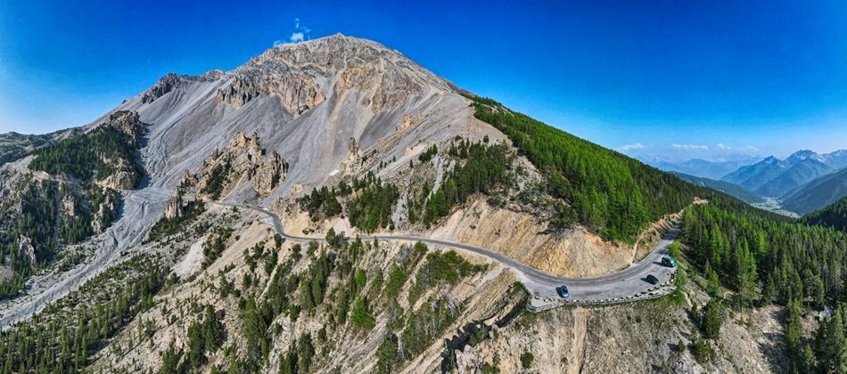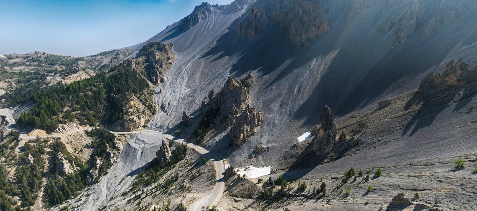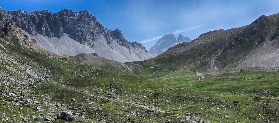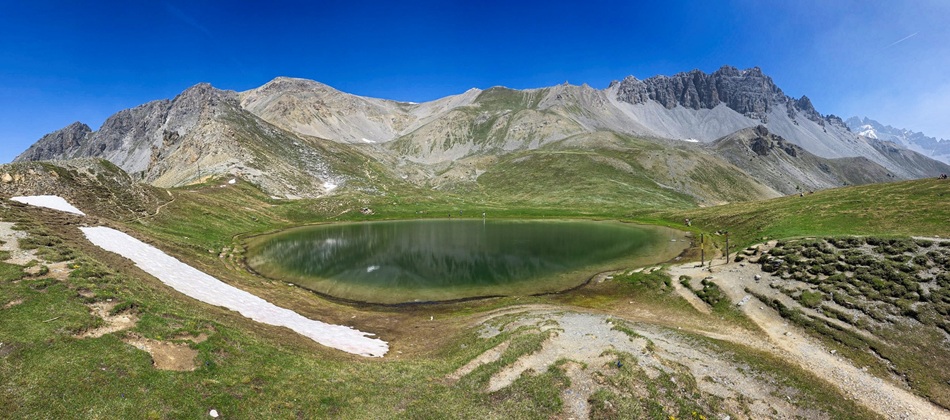 Der Parkplatz für die Wanderung liegt vor dem eigentlichen Pass (2350m) auf 2200m mit einer fantastischen Sicht auf die „Wüste des Izoard“, eine riesige Schuttreiße vom Gipfel des Pic de Quest herab.