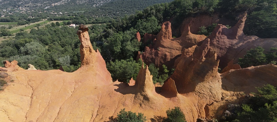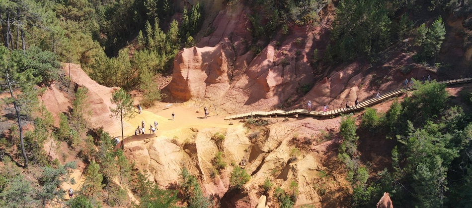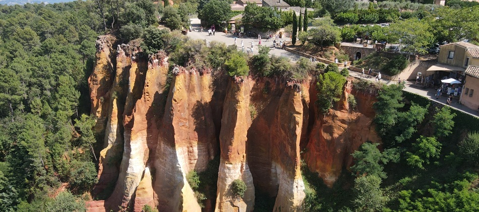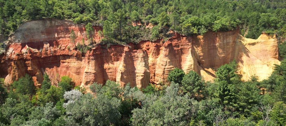 Die Ockervorkommen bei Rustrel wurden bereits in der Römerzeit abgebaut. Die farbenfrohen Steinbrüche werden auch als Colorado provençal bezeichnet und sind Teil einer weltweit bekannten Fundstelle des einst begehrten Naturfarbstoffs. Auf markierten Wegen kann man das Gebiet auf unterschiedlich großen Rundwegen durchstreifen.