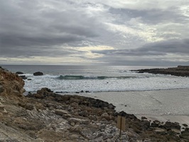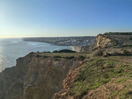 Die heutige Etappe führte mich in stetem Auf und Ab die Küste entlang. Die Ausblicke waren trotz des Wetters wunderbar. Die Wetter-App hatte den ganzen Tag über Wolken versprochen, und der Himmel hielt sich auch daran. Tatsächlich ließ der Himmel sogar ein paar Regentropfen gen Erde fallen, was die Bedingungen noch etwas fordernder machte.