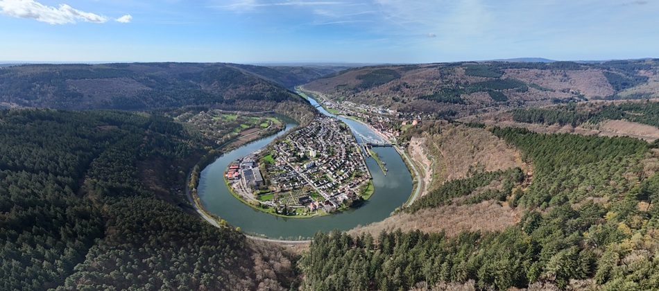 Ein steilerer Aufstieg am Burgkamm entlang zu Aussichtspunkten am Neckar, gefolgt von breiten Forstwegen zur Hoppe Hütte und dem Steinernen Tisch. Abstieg und oberhalb der Neckarschleife wieder zurück.
